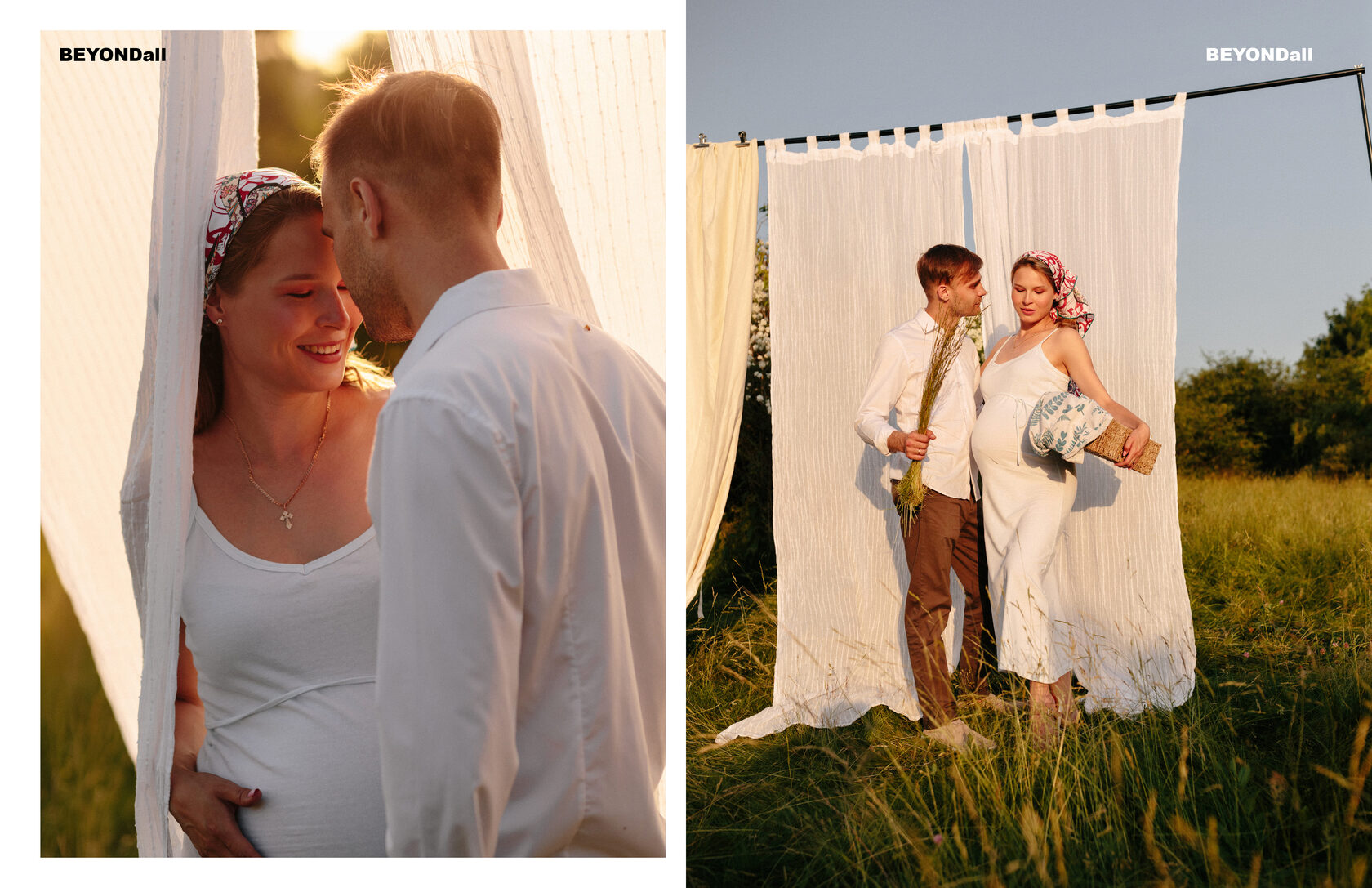 Журналы любят живую историю. Фотосессия беременности с мужем больше не похожа на застывшие позы у камина. Это динамика: вы идете, смеетесь, он нежно обнимает вас со спины, вы одеты в стильный кэжуал (например, джинсы и белые футболки или объемные пиджаки). Это выглядит дорого именно за счет своей естественности.